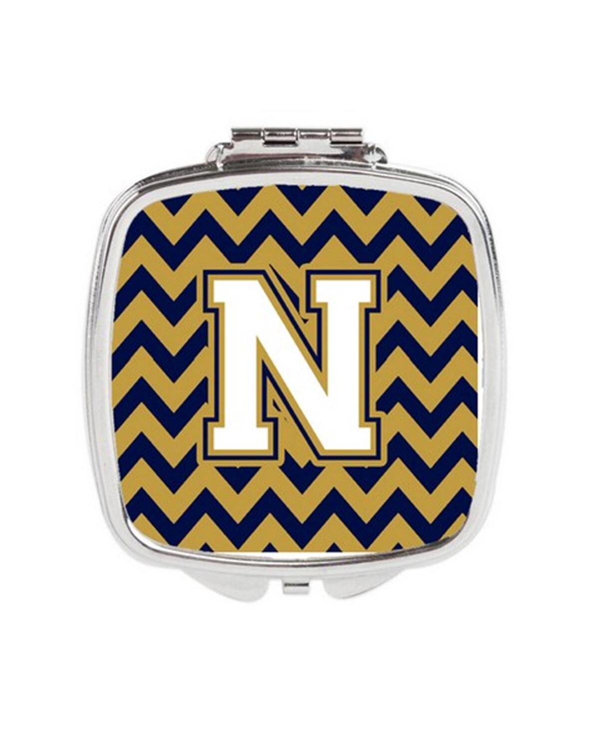 Carolines Treasures CJ1057-NSCM Letter N Chevron Navy Blue & Gold Compact Mirror