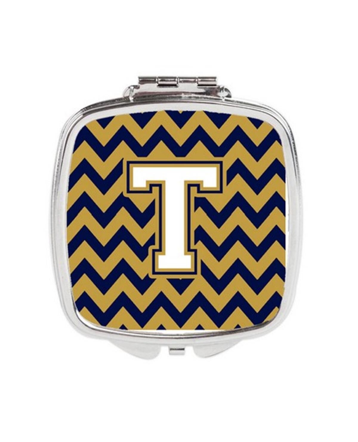 Carolines Treasures CJ1057-TSCM Letter T Chevron Navy Blue & Gold Compact Mirror