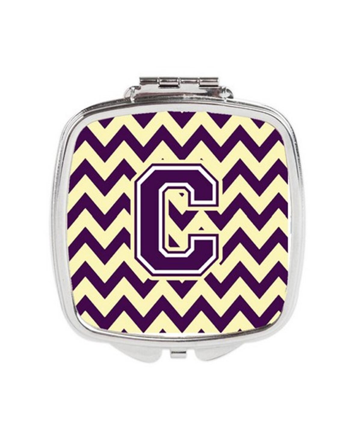 Carolines Treasures CJ1058-CSCM Letter C Chevron Purple & Gold Compact Mirror