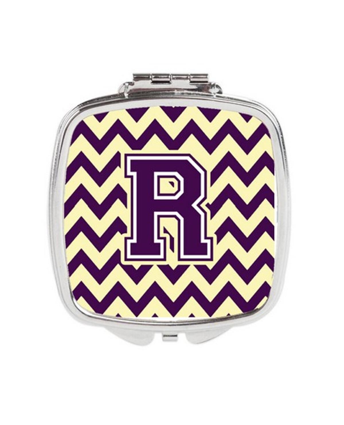 Carolines Treasures CJ1058-RSCM Letter R Chevron Purple & Gold Compact Mirror