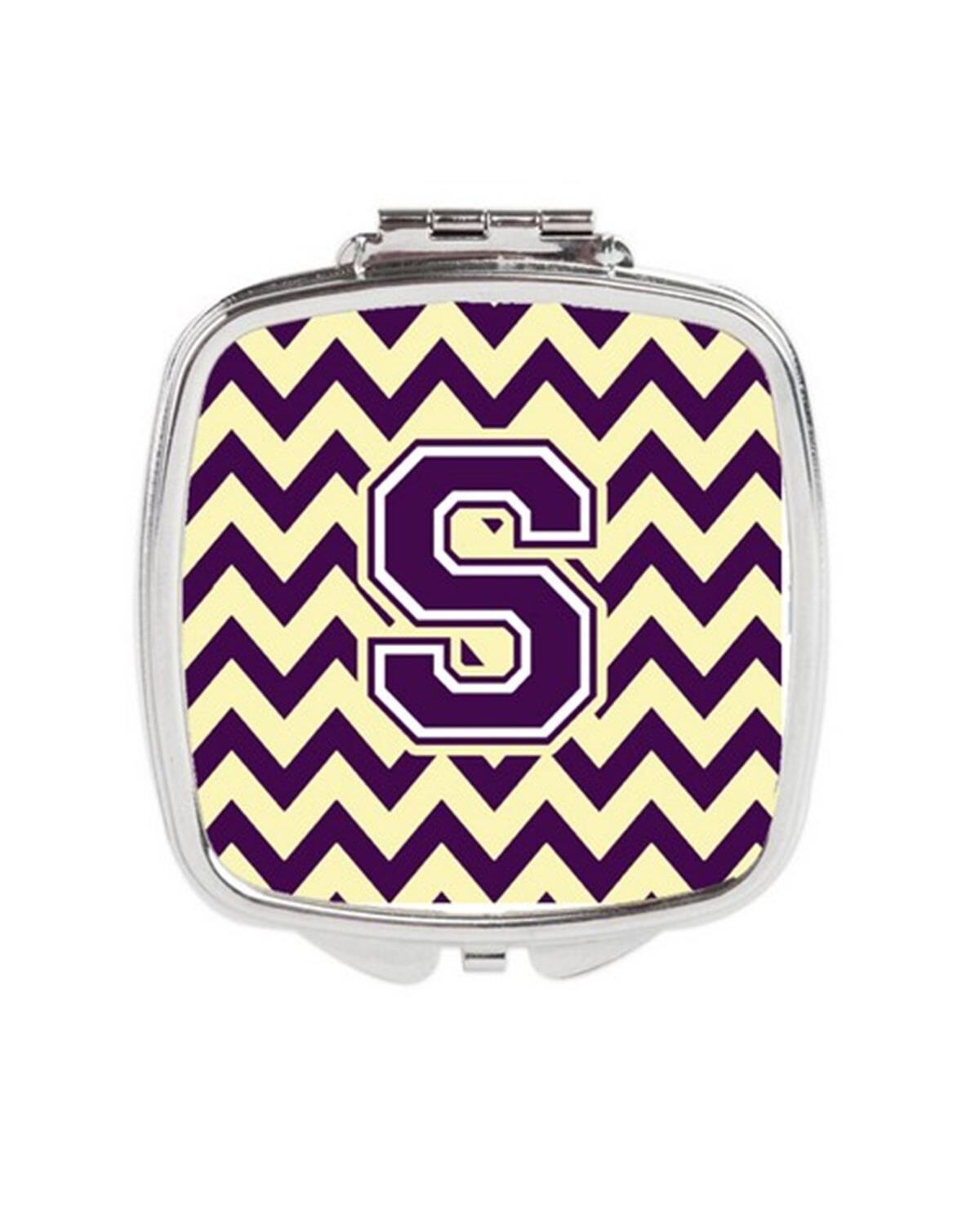 Carolines Treasures CJ1058-SSCM Letter S Chevron Purple & Gold Compact Mirror