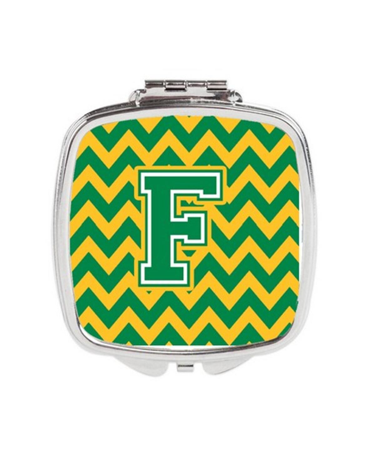 Carolines Treasures CJ1059-FSCM Letter F Chevron Green & Gold Compact Mirror