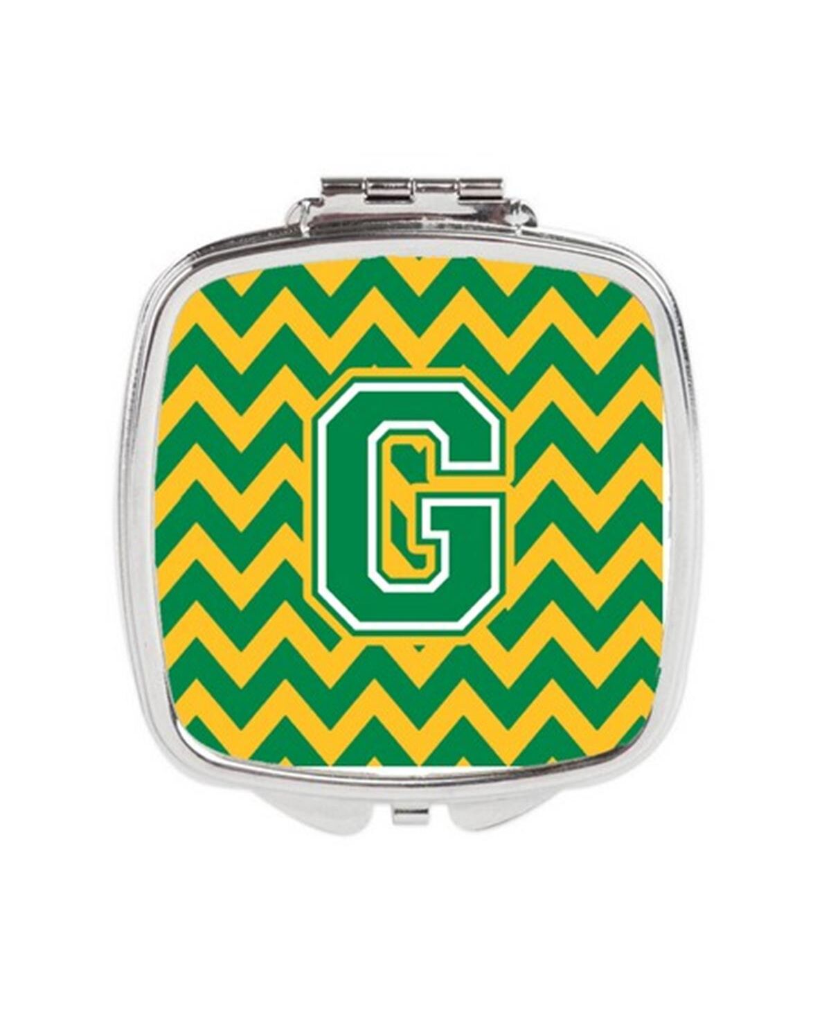 Carolines Treasures CJ1059-GSCM Letter G Chevron Green & Gold Compact Mirror