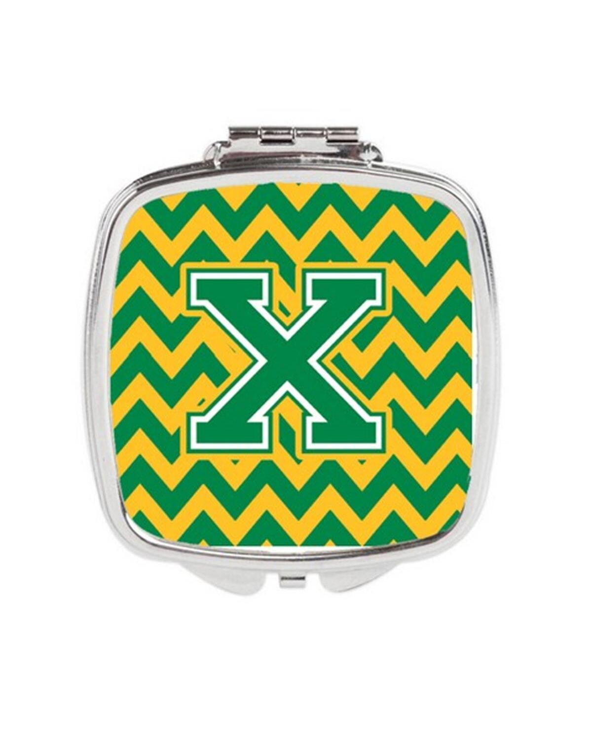 Carolines Treasures CJ1059-XSCM Letter X Chevron Green & Gold Compact Mirror