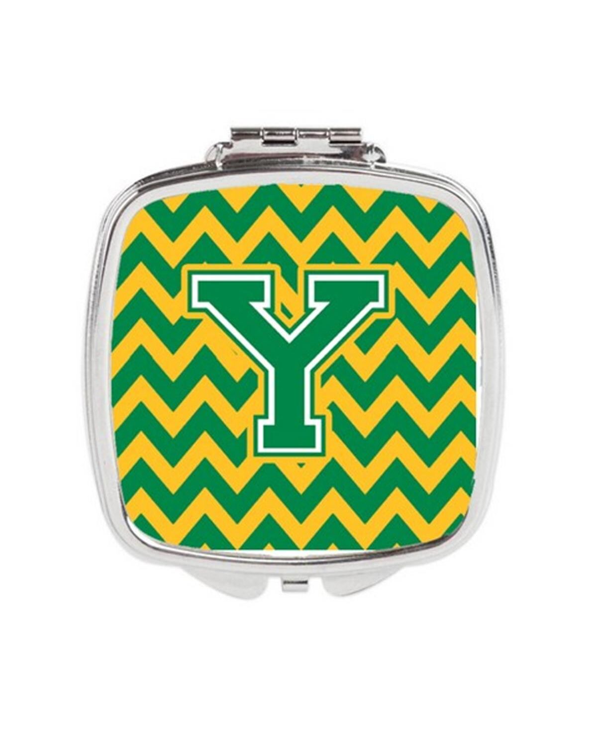 Carolines Treasures CJ1059-YSCM Letter Y Chevron Green & Gold Compact Mirror