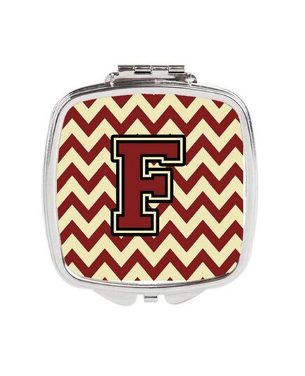 Carolines Treasures CJ1061-FSCM Letter F Chevron Maroon & Gold Compact Mirror