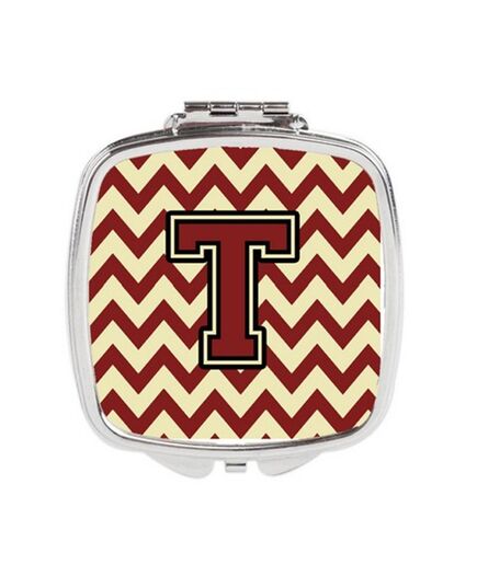 Carolines Treasures CJ1061-TSCM Letter T Chevron Maroon & Gold Compact Mirror