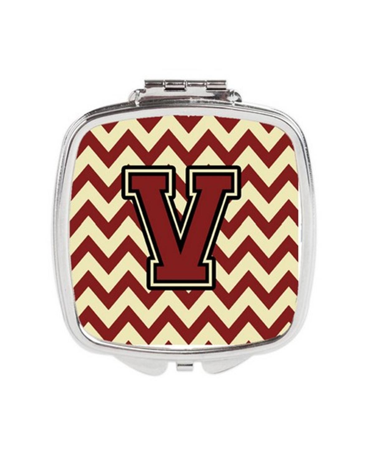Carolines Treasures CJ1061-VSCM Letter V Chevron Maroon & Gold Compact Mirror