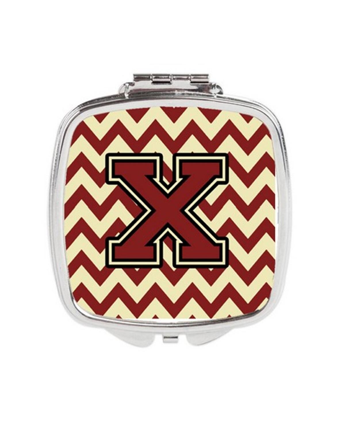 Carolines Treasures CJ1061-XSCM Letter X Chevron Maroon & Gold Compact Mirror