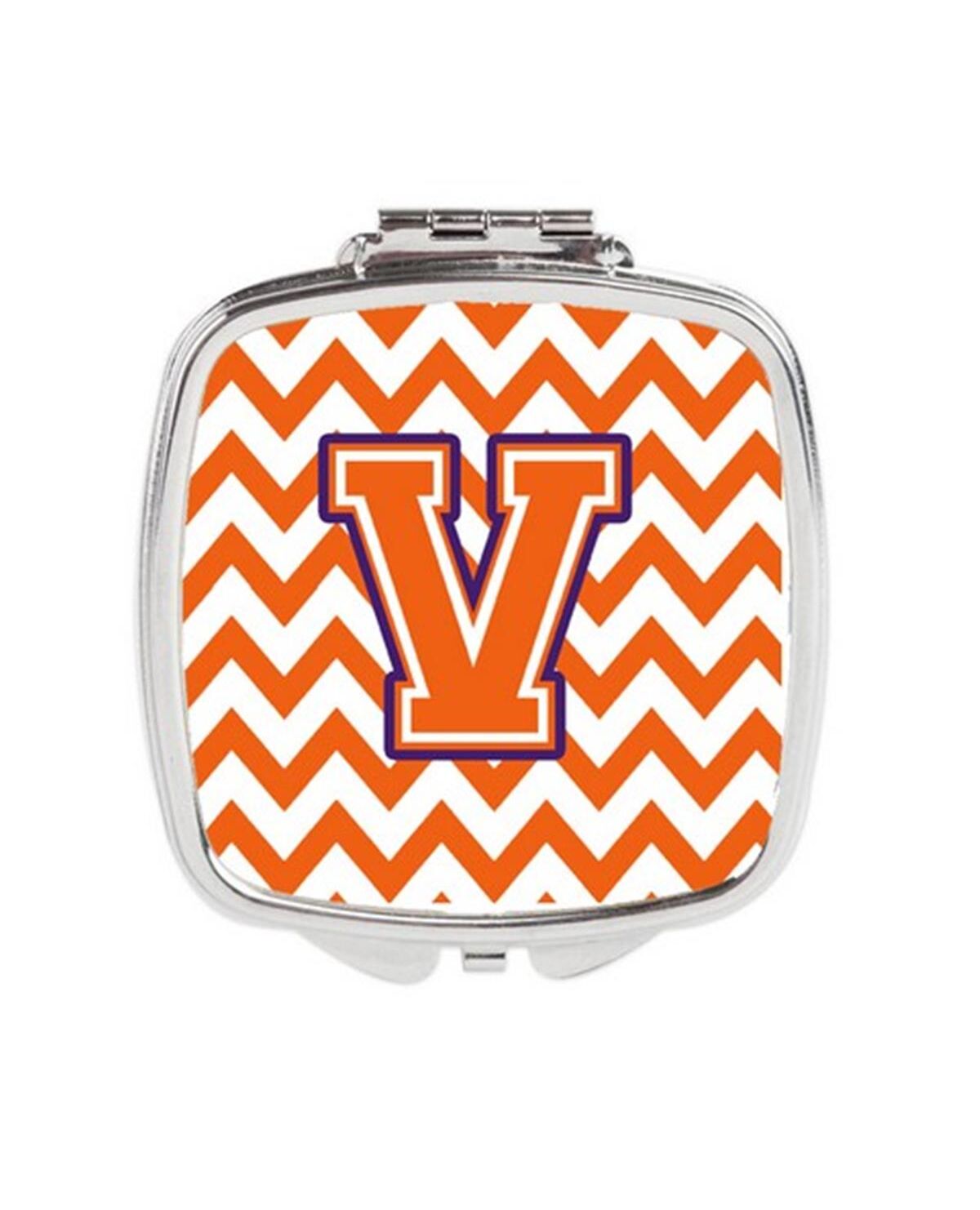 Carolines Treasures CJ1062-VSCM Letter V Chevron Orange & Regalia Compact Mirror