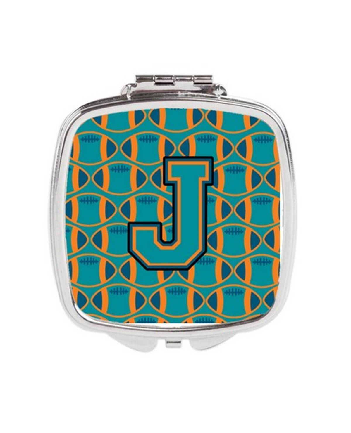 Carolines Treasures CJ1063-JSCM Letter J Football Aqua, Orange & Marine Blue Compact Mirror