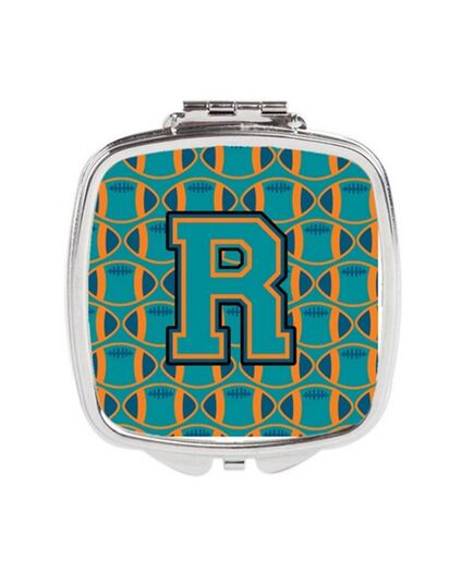 Carolines Treasures CJ1063-RSCM Letter R Football Aqua, Orange & Marine Blue Compact Mirror