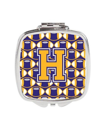 Carolines Treasures CJ1064-HSCM Letter H Football Purple & Gold Compact Mirror