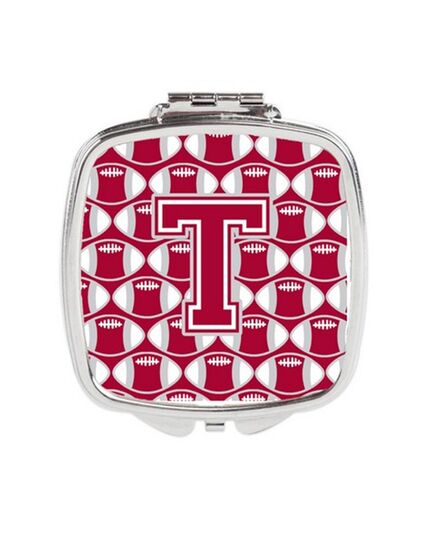 Carolines Treasures CJ1065-TSCM Letter T Football Crimson, Grey & White Compact Mirror