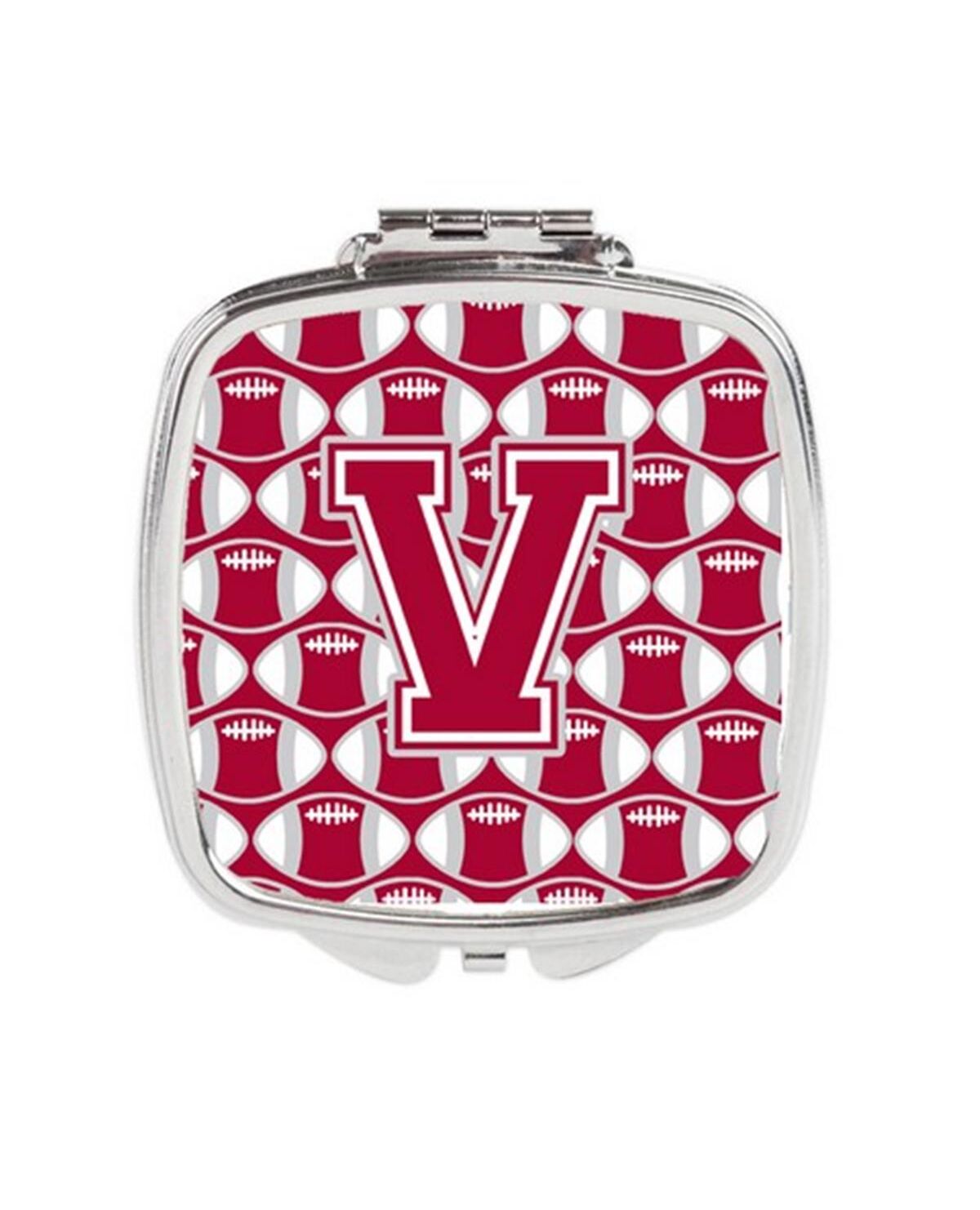 Carolines Treasures CJ1065-VSCM Letter V Football Crimson, Grey & White Compact Mirror
