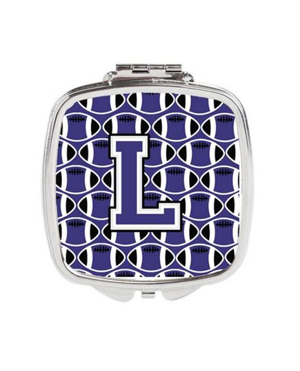 Carolines Treasures CJ1068-LSCM Letter L Football Purple & White Compact Mirror