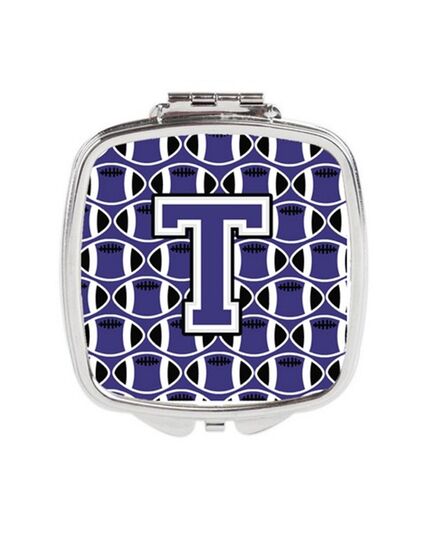 Carolines Treasures CJ1068-TSCM Letter T Football Purple & White Compact Mirror