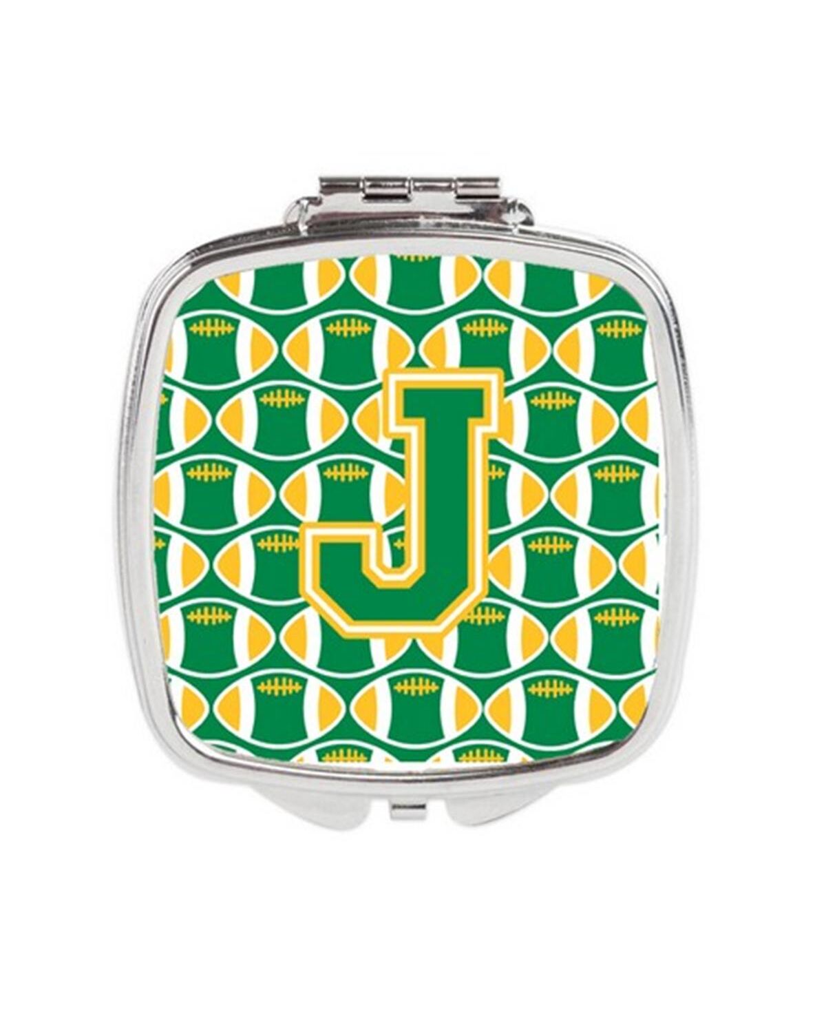 Carolines Treasures CJ1069-JSCM Letter J Football Green & Gold Compact Mirror