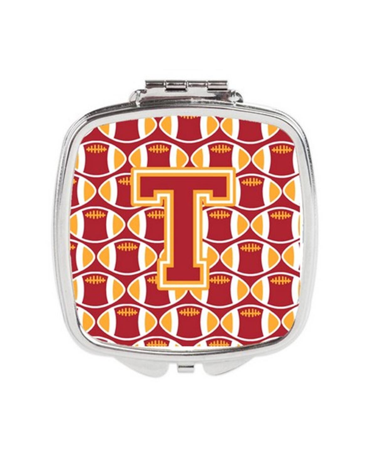Carolines Treasures CJ1070-TSCM Letter T Football Cardinal & Gold Compact Mirror