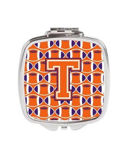 Carolines Treasures CJ1072-TSCM Letter T Football Orange, White & Regalia Compact Mirror