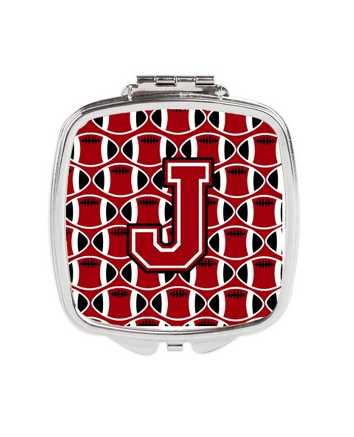 Carolines Treasures CJ1073-JSCM Letter J Football Red, Black & White Compact Mirror