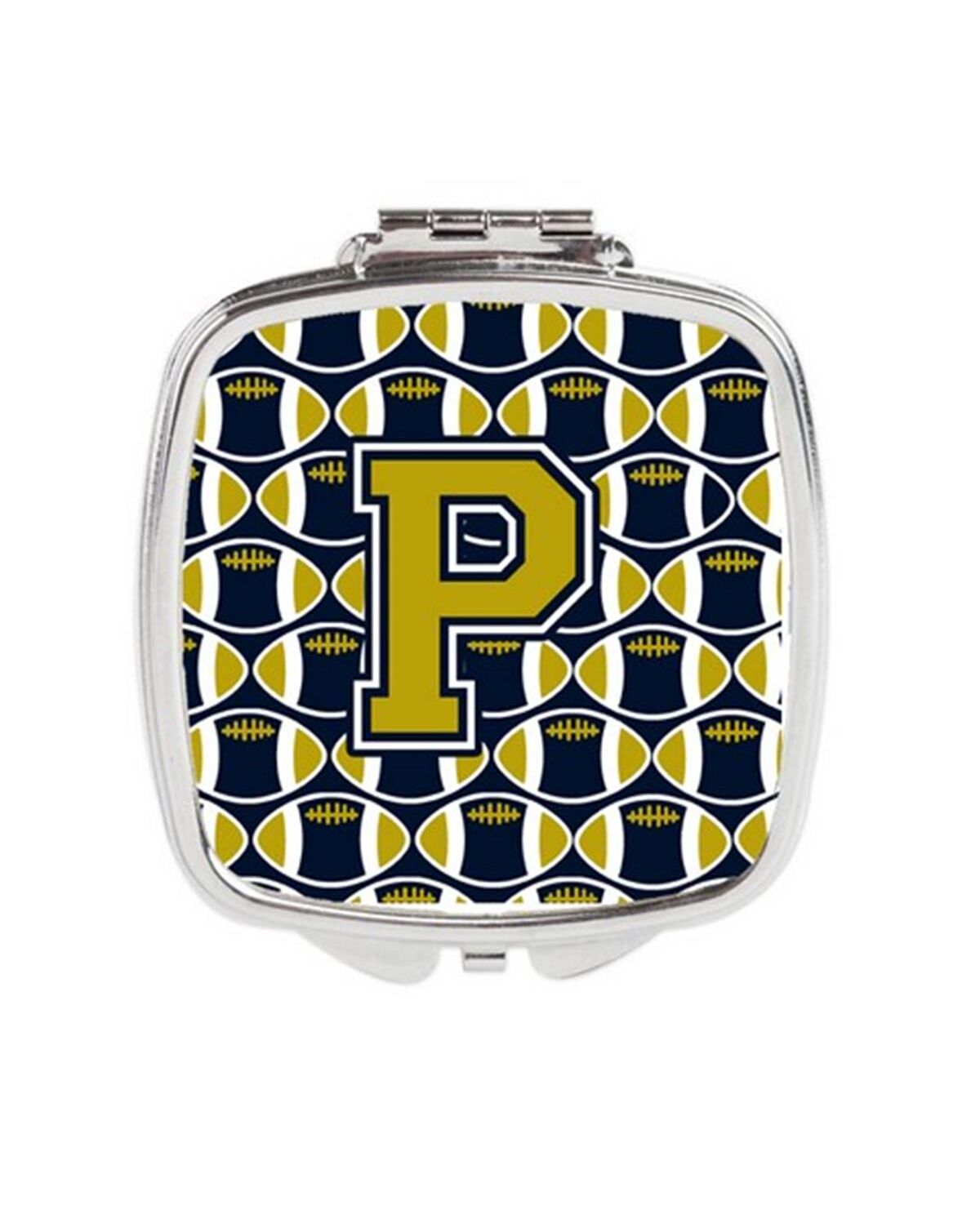 Carolines Treasures CJ1074-PSCM Letter P Football Blue & Gold Compact Mirror, 3 x 0.3 x 2.75 in.
