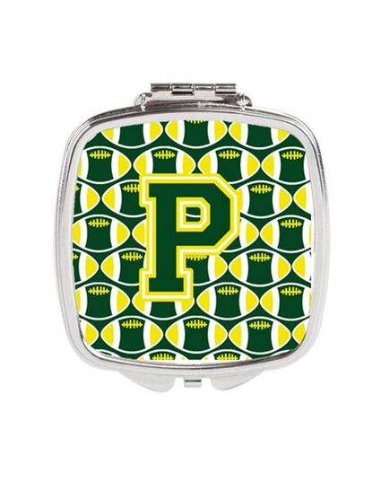 Carolines Treasures CJ1075-PSCM Letter P Football Green & Yellow Compact Mirror