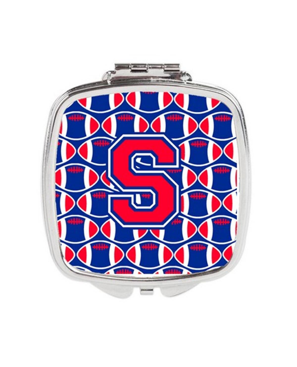 Carolines Treasures CJ1076-SSCM Letter S Football Harvard Crimson & Yale Blue Compact Mirror