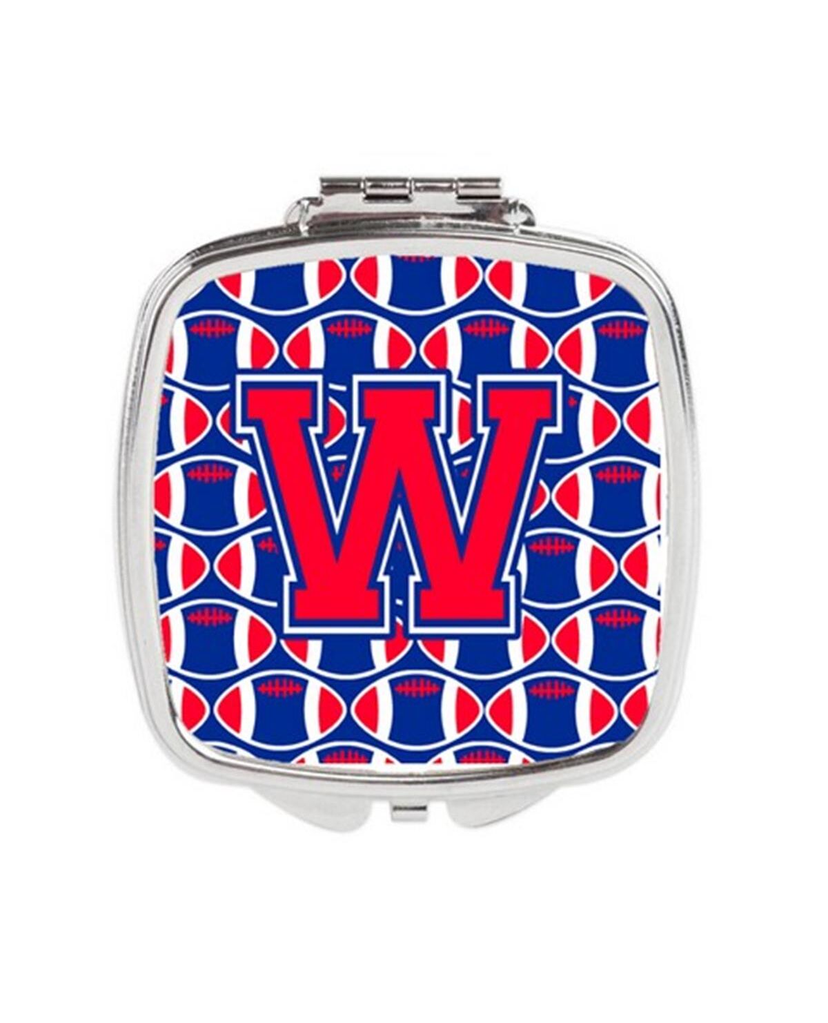 Carolines Treasures CJ1076-WSCM Letter W Football Harvard Crimson & Yale Blue Compact Mirror
