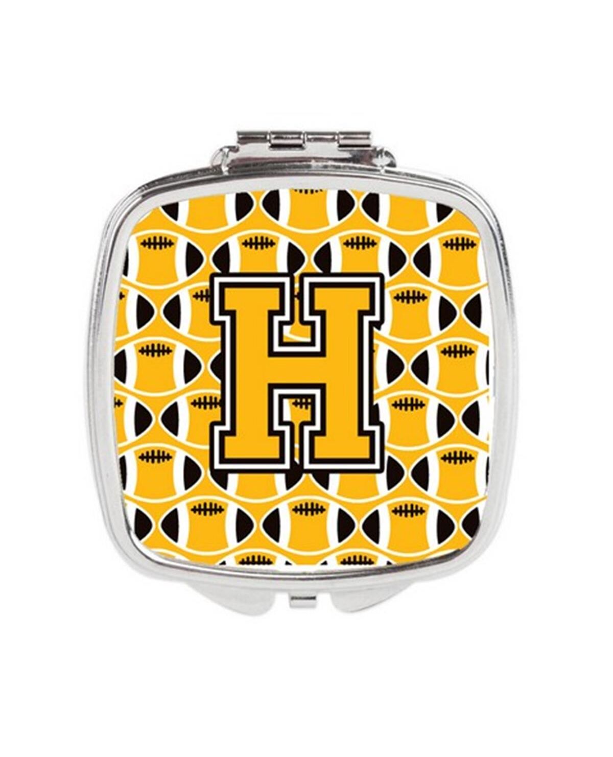 Carolines Treasures CJ1080-HSCM Letter H Football Black, Old Gold & White Compact Mirror