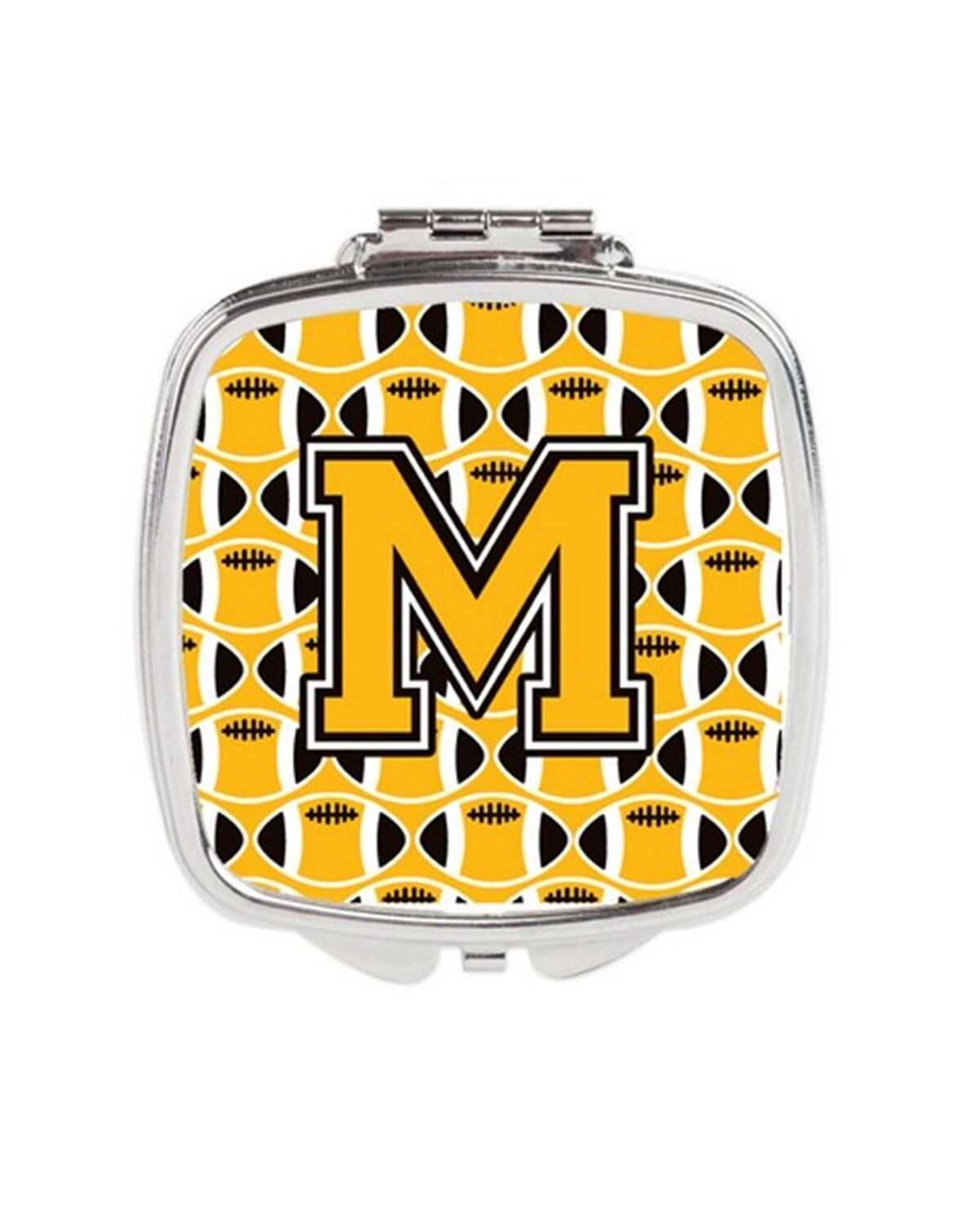 Carolines Treasures CJ1080-MSCM Letter M Football Black, Old Gold & White Compact Mirror