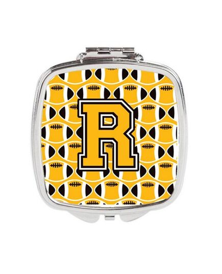 Carolines Treasures CJ1080-RSCM Letter R Football Black, Old Gold & White Compact Mirror