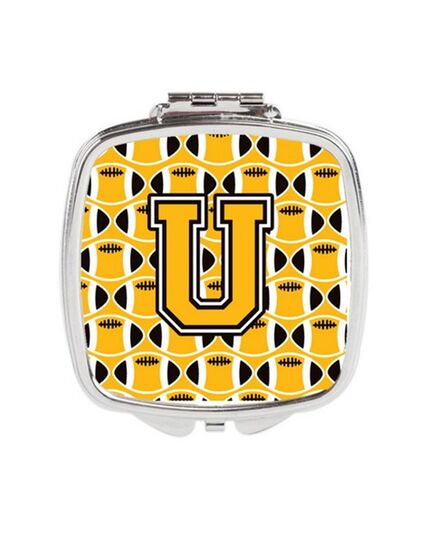 Carolines Treasures CJ1080-USCM Letter U Football Black, Old Gold & White Compact Mirror