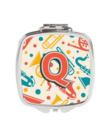 Carolines Treasures CJ2001-QSCM Letter Q Retro Teal Orange Musical Instruments Initial Compact Mirror