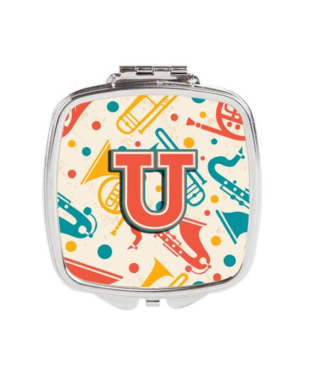 Carolines Treasures CJ2001-USCM Letter U Retro Teal Orange Musical Instruments Initial Compact Mirror