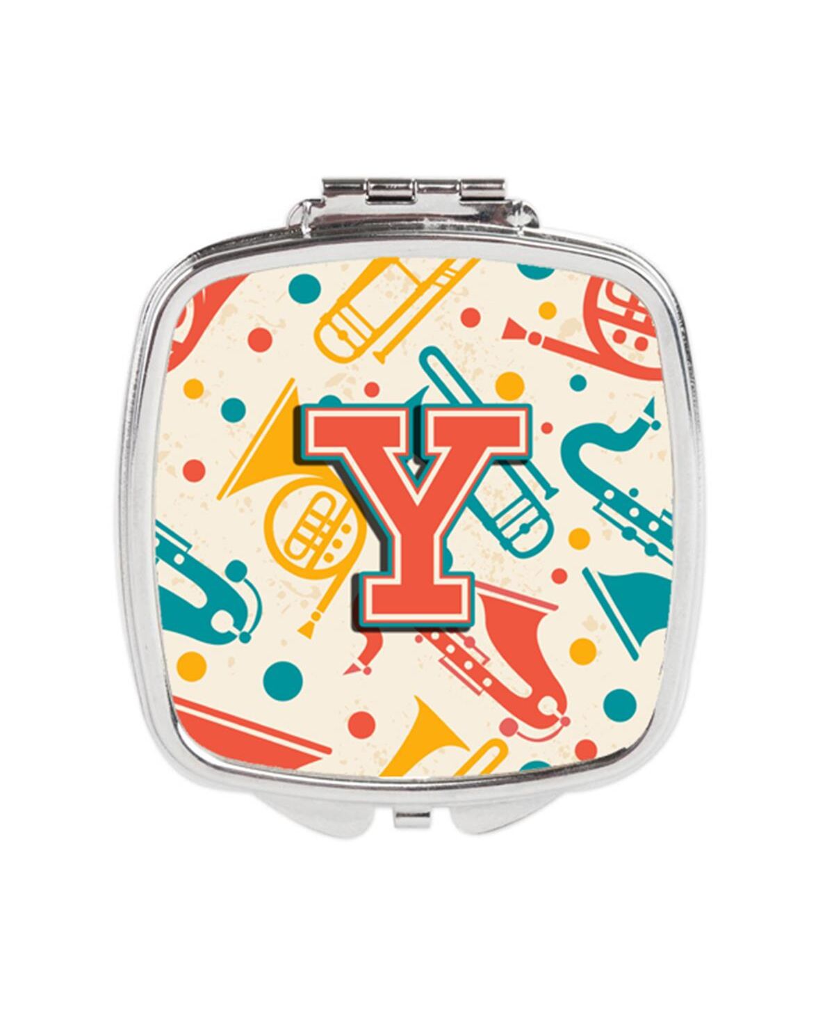 Carolines Treasures CJ2001-YSCM Letter Y Retro Teal Orange Musical Instruments Initial Compact Mirror
