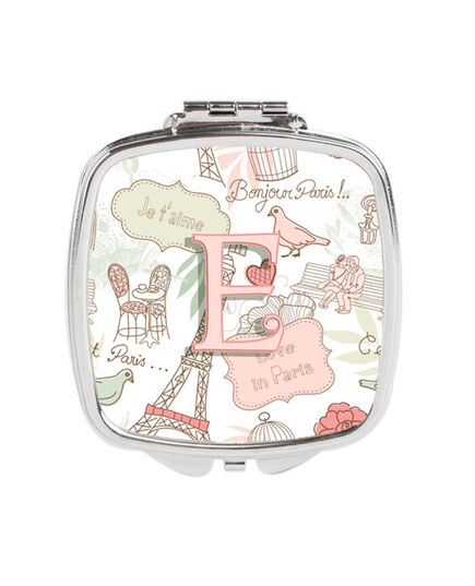 Carolines Treasures CJ2002-ESCM Letter E Love in Paris Pink Compact Mirror