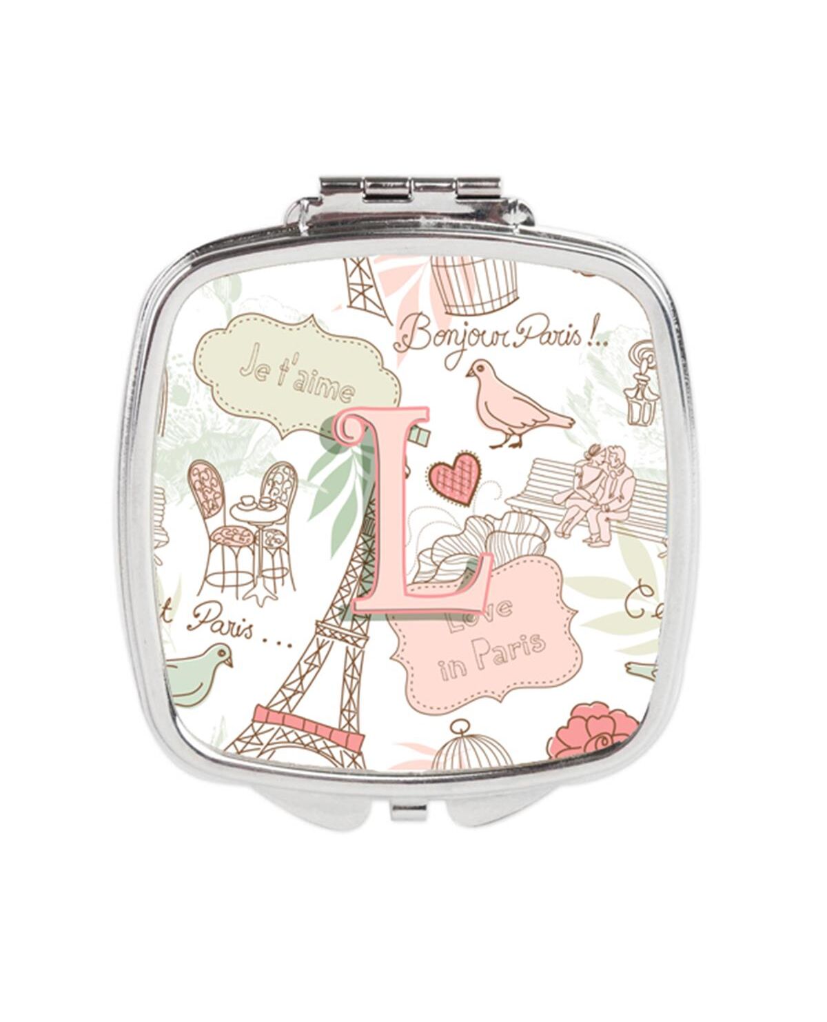 Carolines Treasures CJ2002-LSCM Letter L Love in Paris Pink Compact Mirror