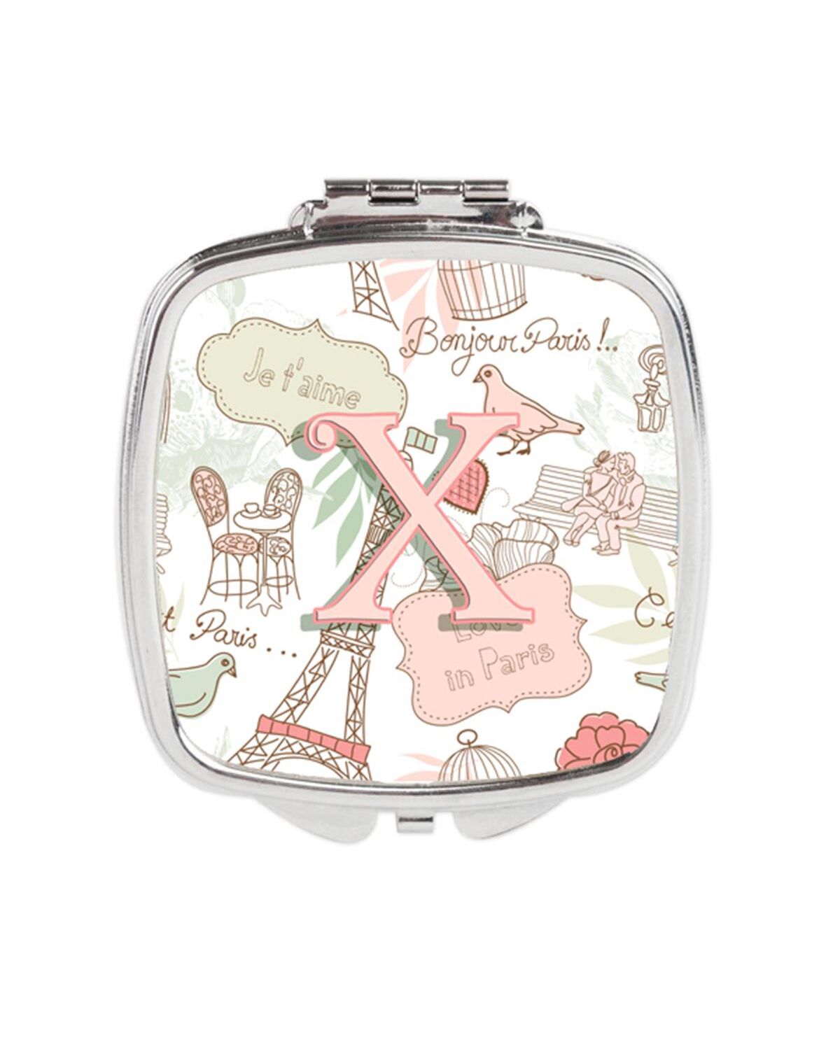 Carolines Treasures CJ2002-XSCM Letter X Love in Paris Pink Compact Mirror