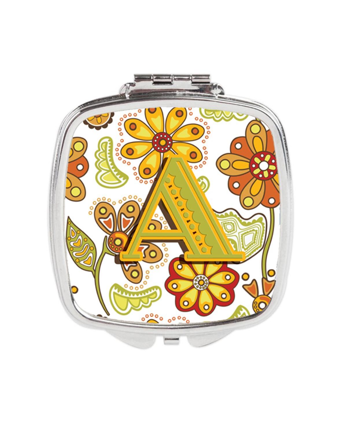 Carolines Treasures CJ2003-ASCM Letter a Floral Mustard & Green Compact Mirror