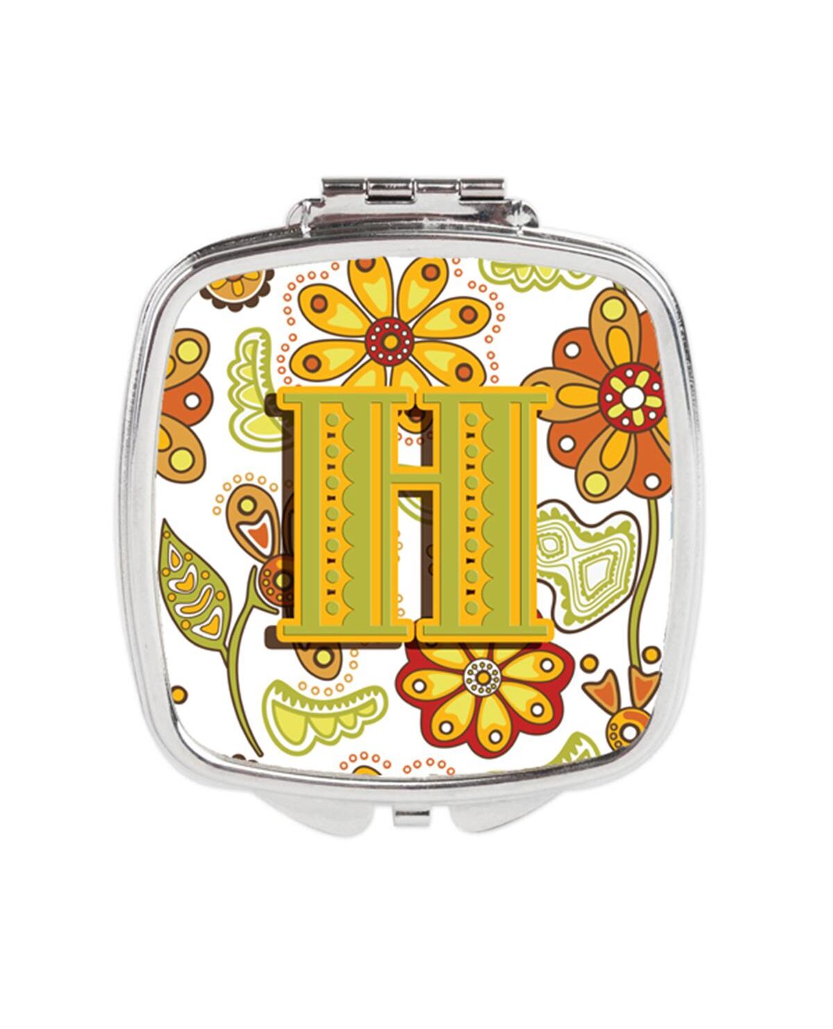 Carolines Treasures CJ2003-HSCM Letter H Floral Mustard & Green Compact Mirror