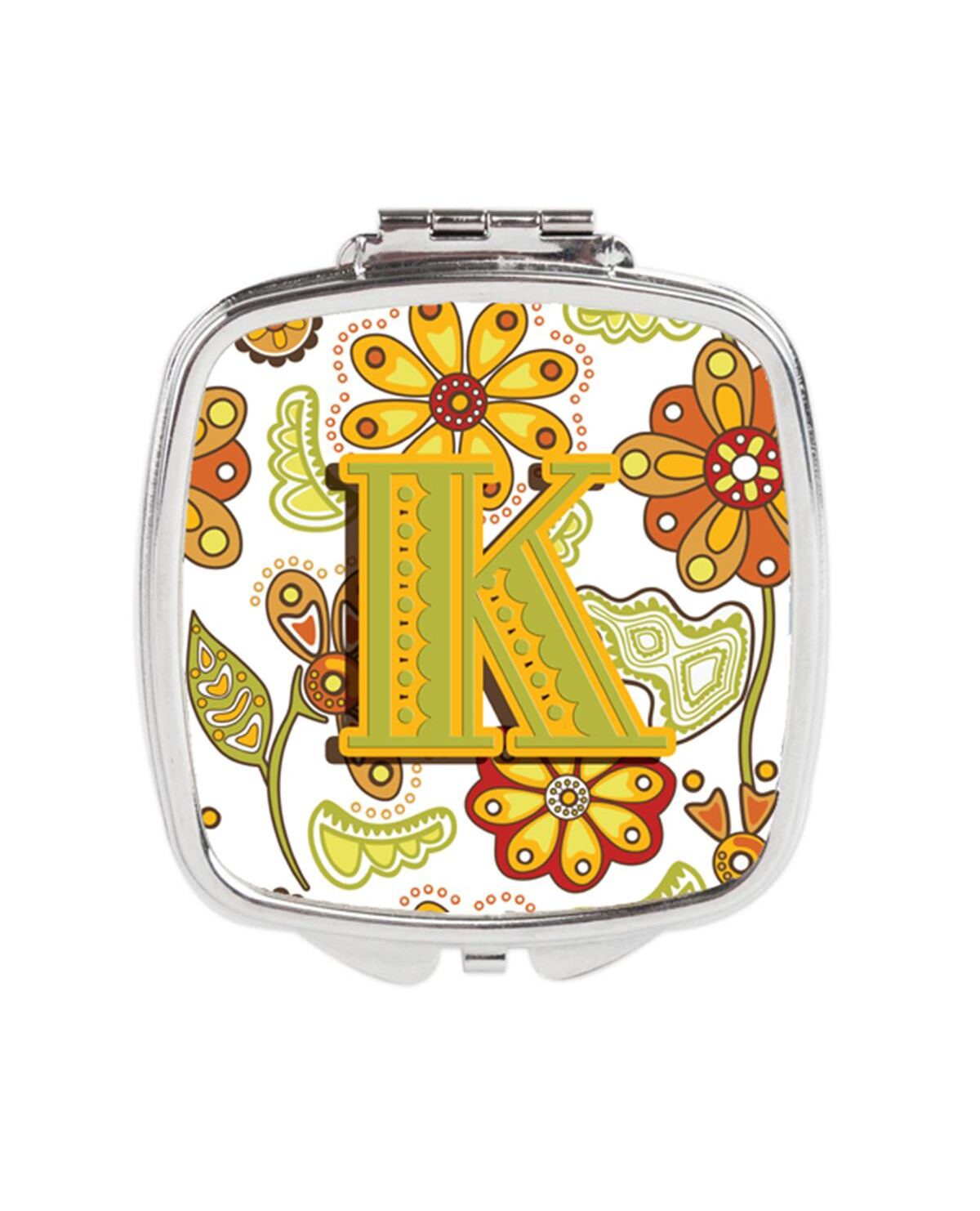 Carolines Treasures CJ2003-KSCM Letter K Floral Mustard & Green Compact Mirror
