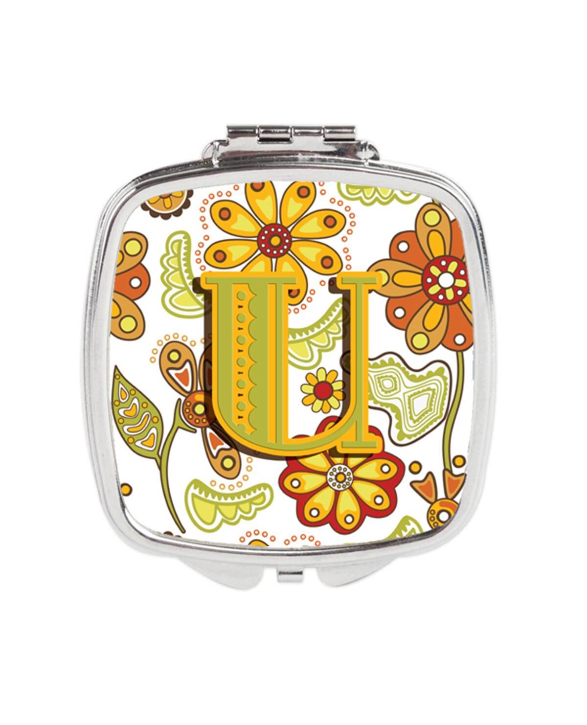 Carolines Treasures CJ2003-USCM Letter U Floral Mustard & Green Compact Mirror