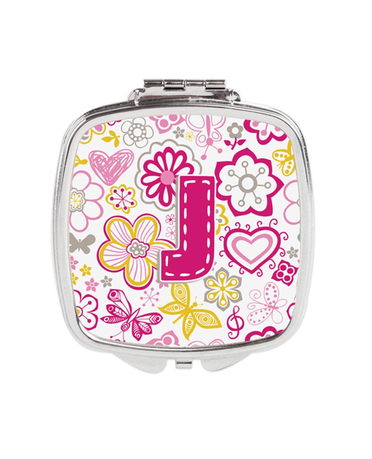 Carolines Treasures CJ2005-JSCM Letter J Flowers & Butterflies Pink Compact Mirror