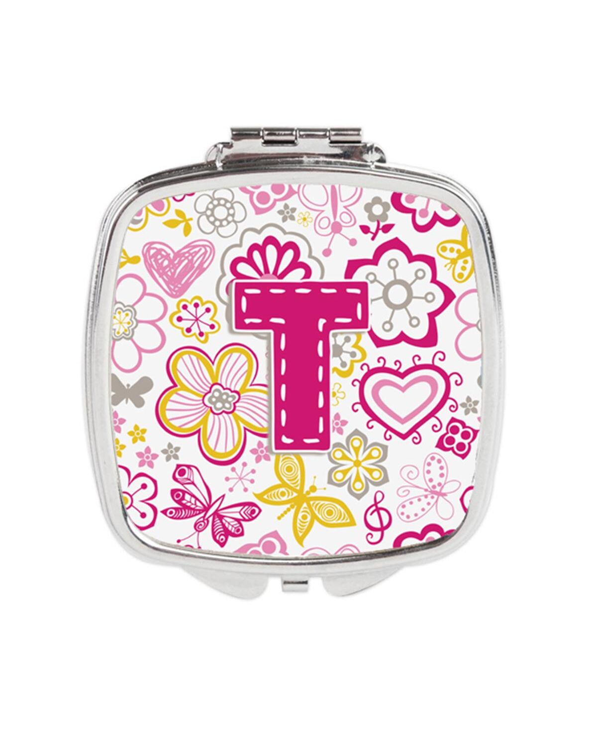 Carolines Treasures CJ2005-TSCM Letter T Flowers & Butterflies Pink Compact Mirror