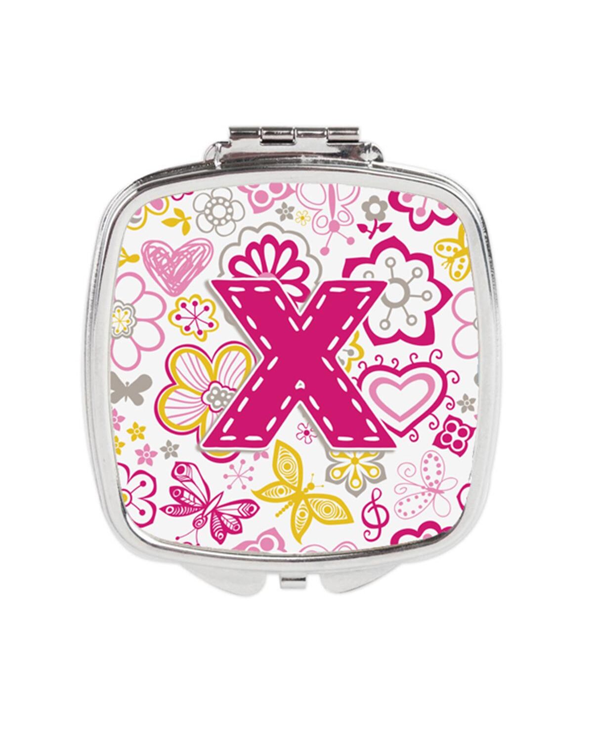 Carolines Treasures CJ2005-XSCM Letter X Flowers & Butterflies Pink Compact Mirror
