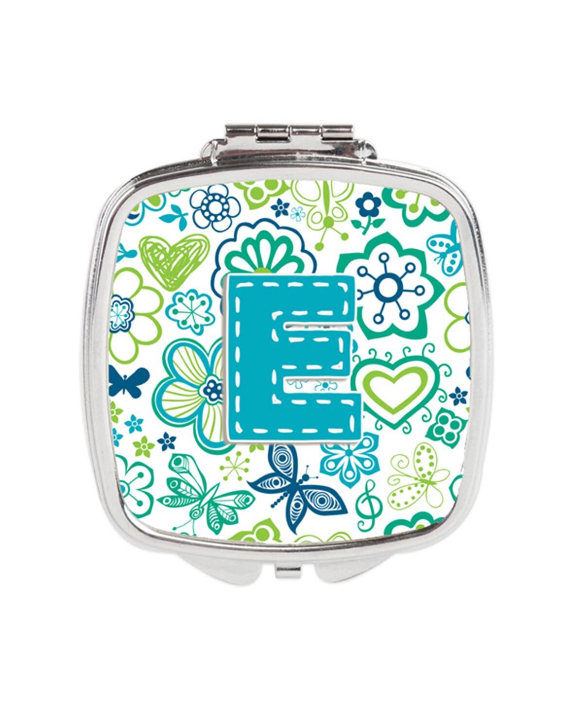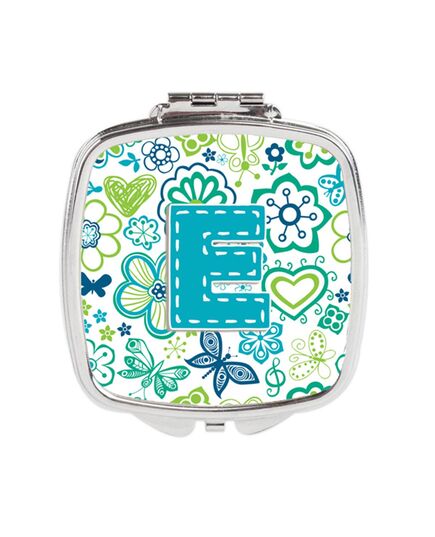 Carolines Treasures CJ2006-ESCM Letter E Flowers & Butterflies Teal Blue Compact Mirror