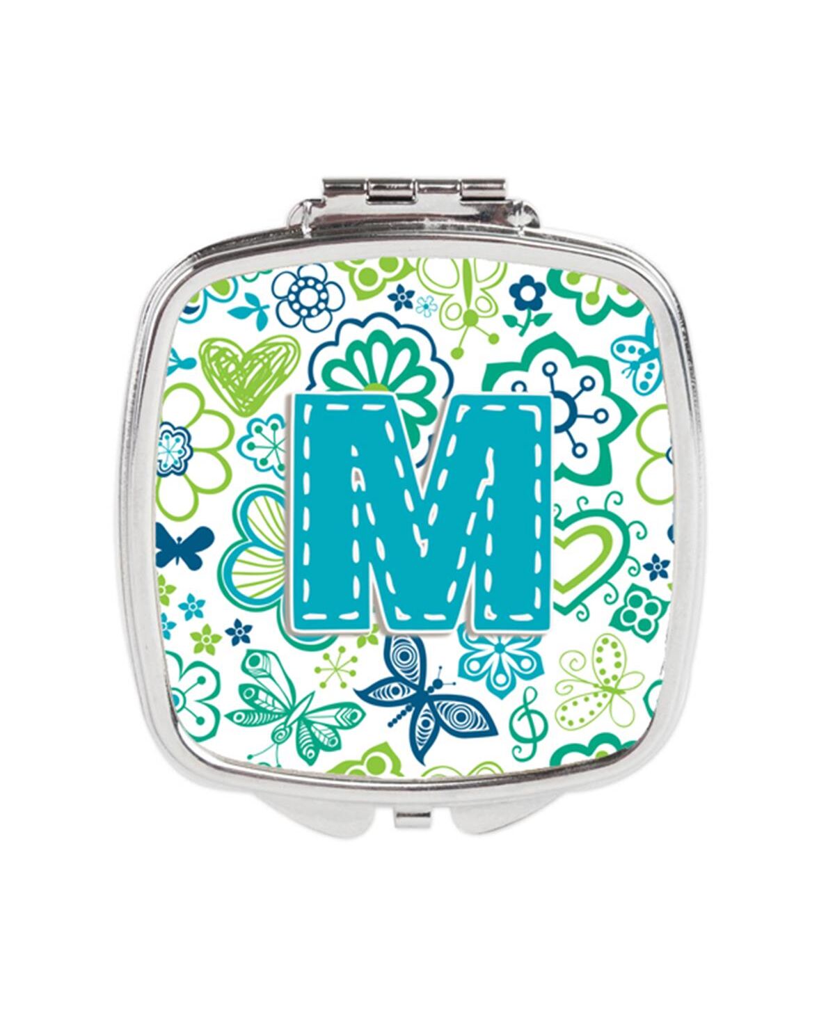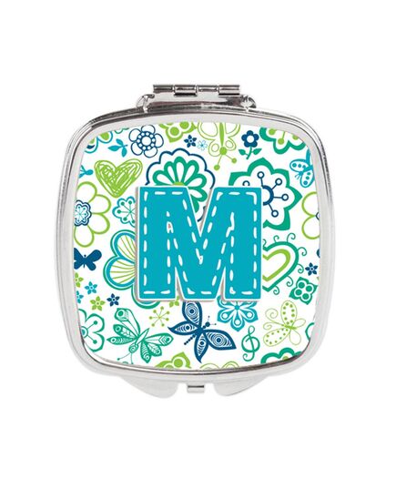 Carolines Treasures CJ2006-MSCM Letter M Flowers & Butterflies Teal Blue Compact Mirror