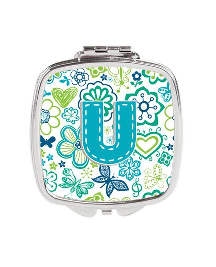 Carolines Treasures CJ2006-USCM Letter U Flowers & Butterflies Teal Blue Compact Mirror