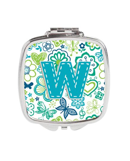 Carolines Treasures CJ2006-WSCM Letter W Flowers & Butterflies Teal Blue Compact Mirror